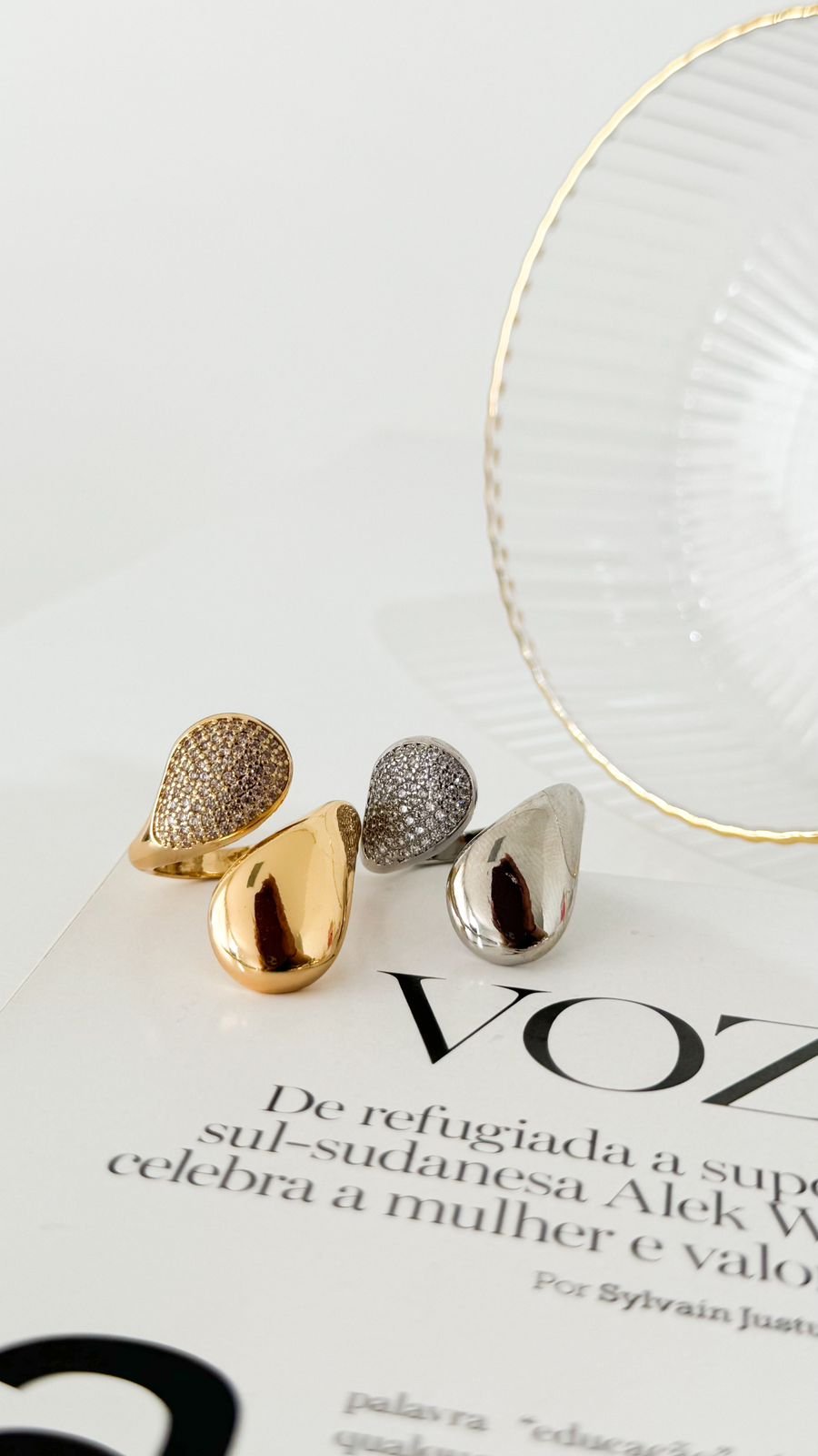 AN150 Anel Gota Lisa e Crevajada Regulável Folheado
