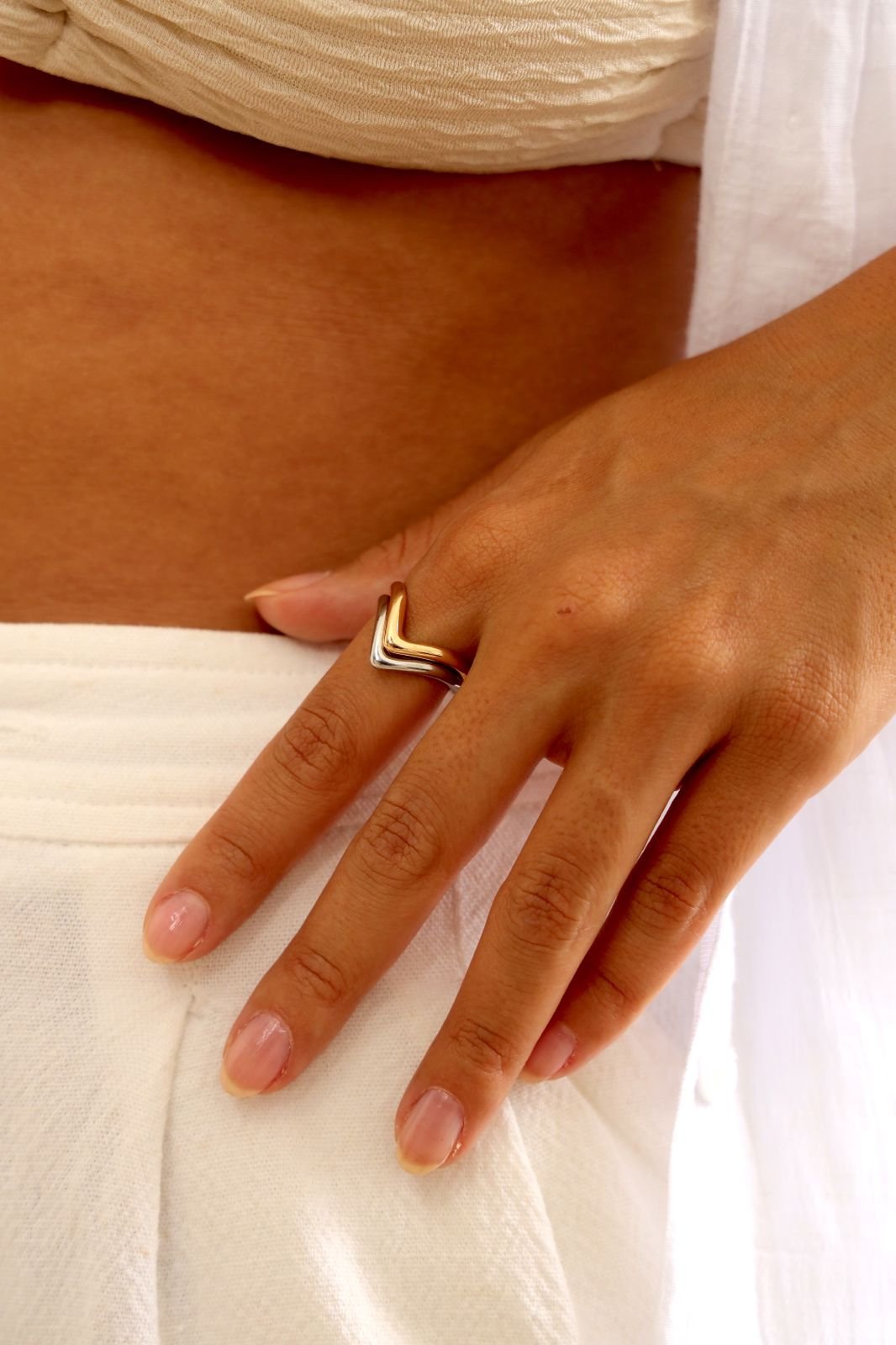 Elegância em dobro! O Anel Duplo com acabamento folheado em ouro e prata é perfeito para quem ama misturar tons metálicos de forma sofisticada. Seu design moderno combina duas cores clássicas em uma peça única, ideal para complementar qualquer look com charme e estilo.