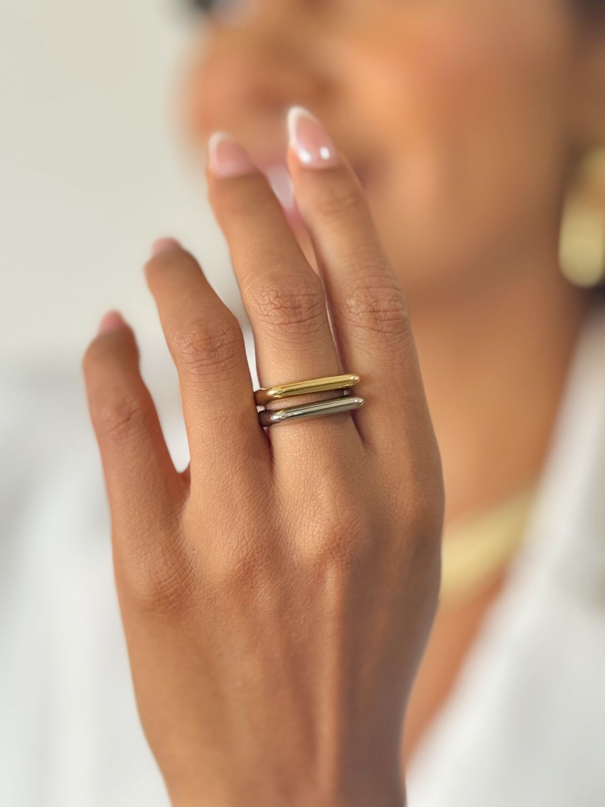 Anel quadrado fio liso ajustável semi jóia banhado á ouro 18k e a prata em ródio branco