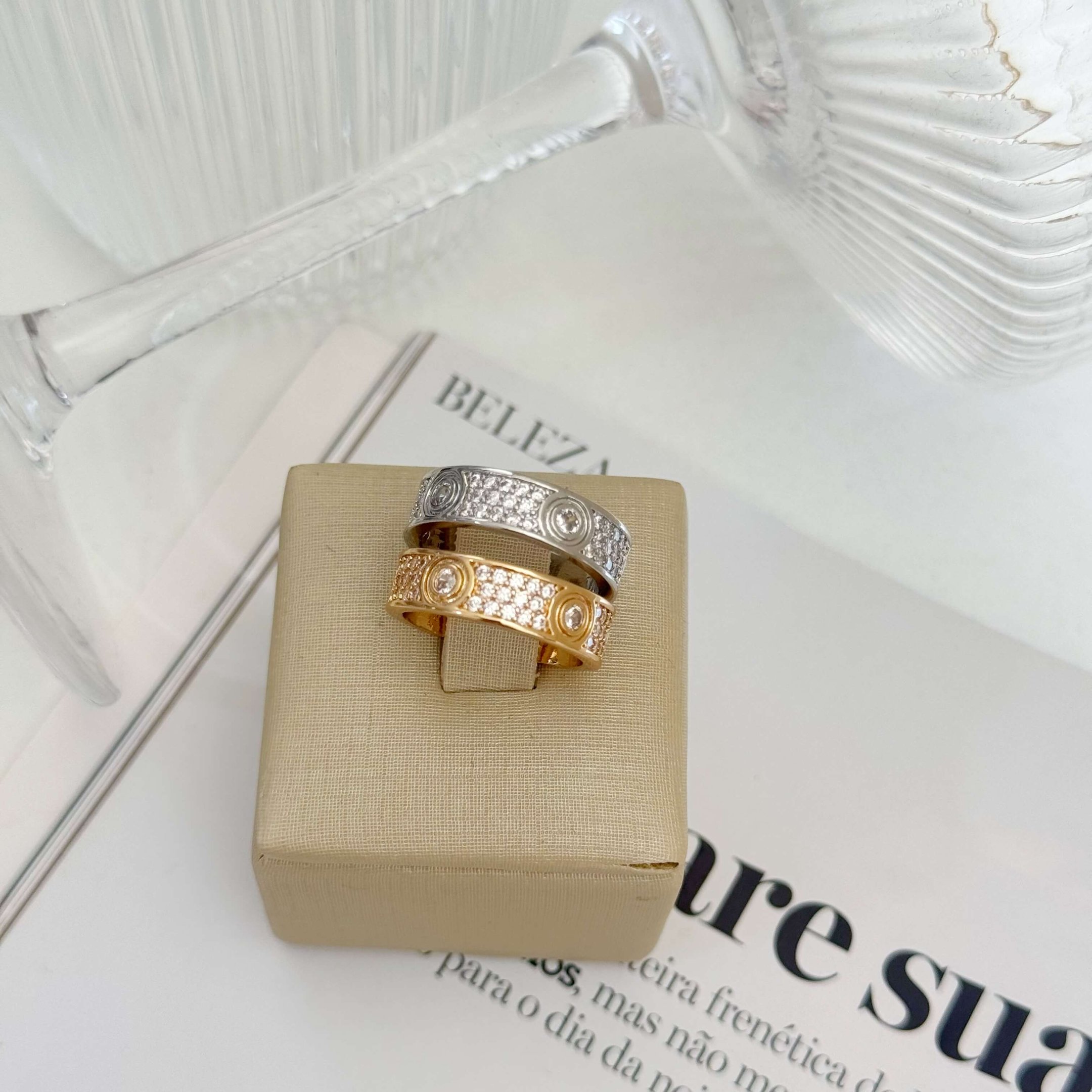 O Anel Cravejado com Detalhes Circulares é um acessório elegante e moderno, disponível nas versões dourada e prateada. Folheado com alto padrão de qualidade, traz brilho intenso e acabamento impecável — ideal para compor looks sofisticados com um toque de luxo.