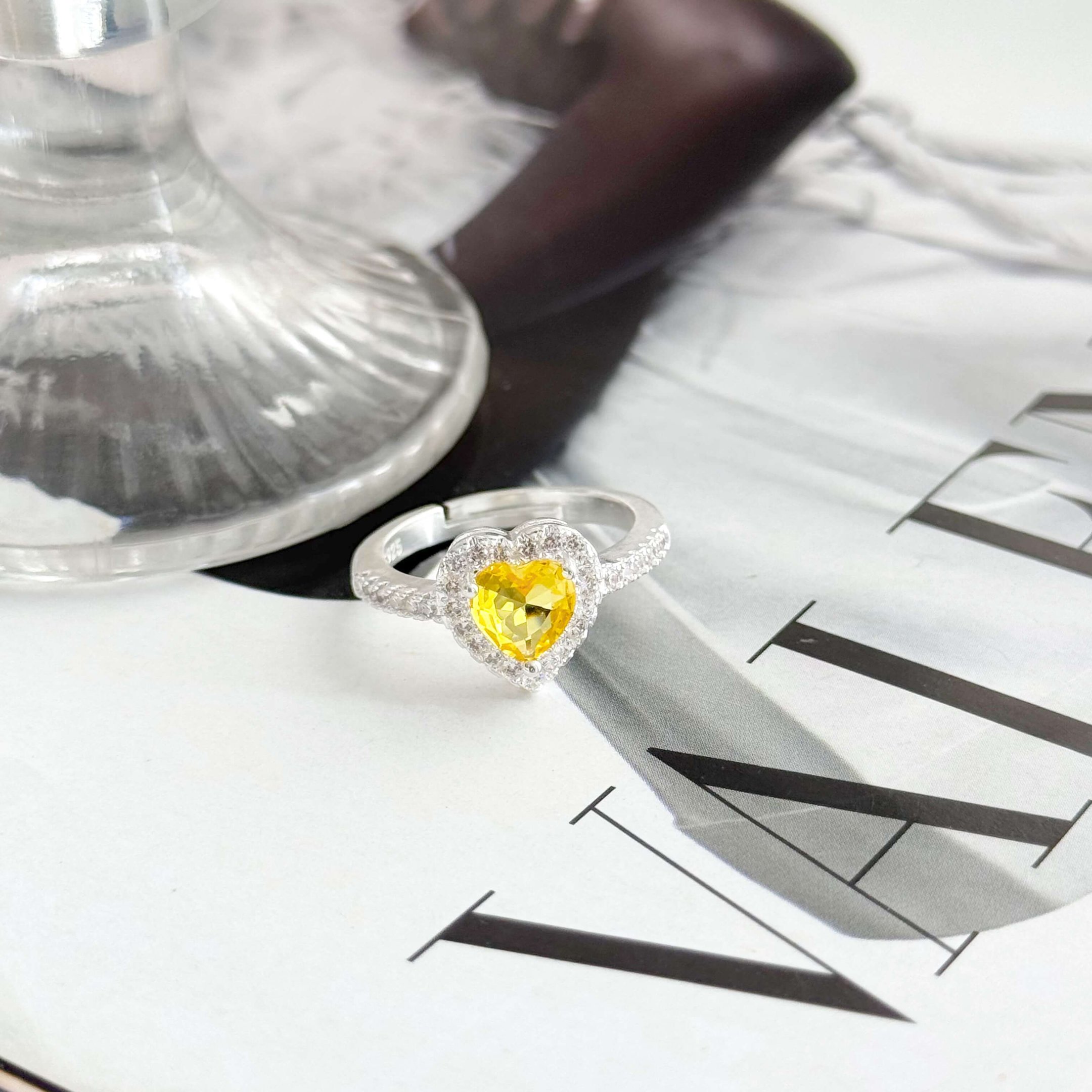 O Anel Coração Amarelo Ajustável – Semi Joia Banhado a Prata é a peça perfeita para quem busca um acessório delicado, moderno e cheio de brilho. O coração em zircônia amarela facetada traz um toque vibrante e sofisticado, iluminando o visual com elegância e personalidade.