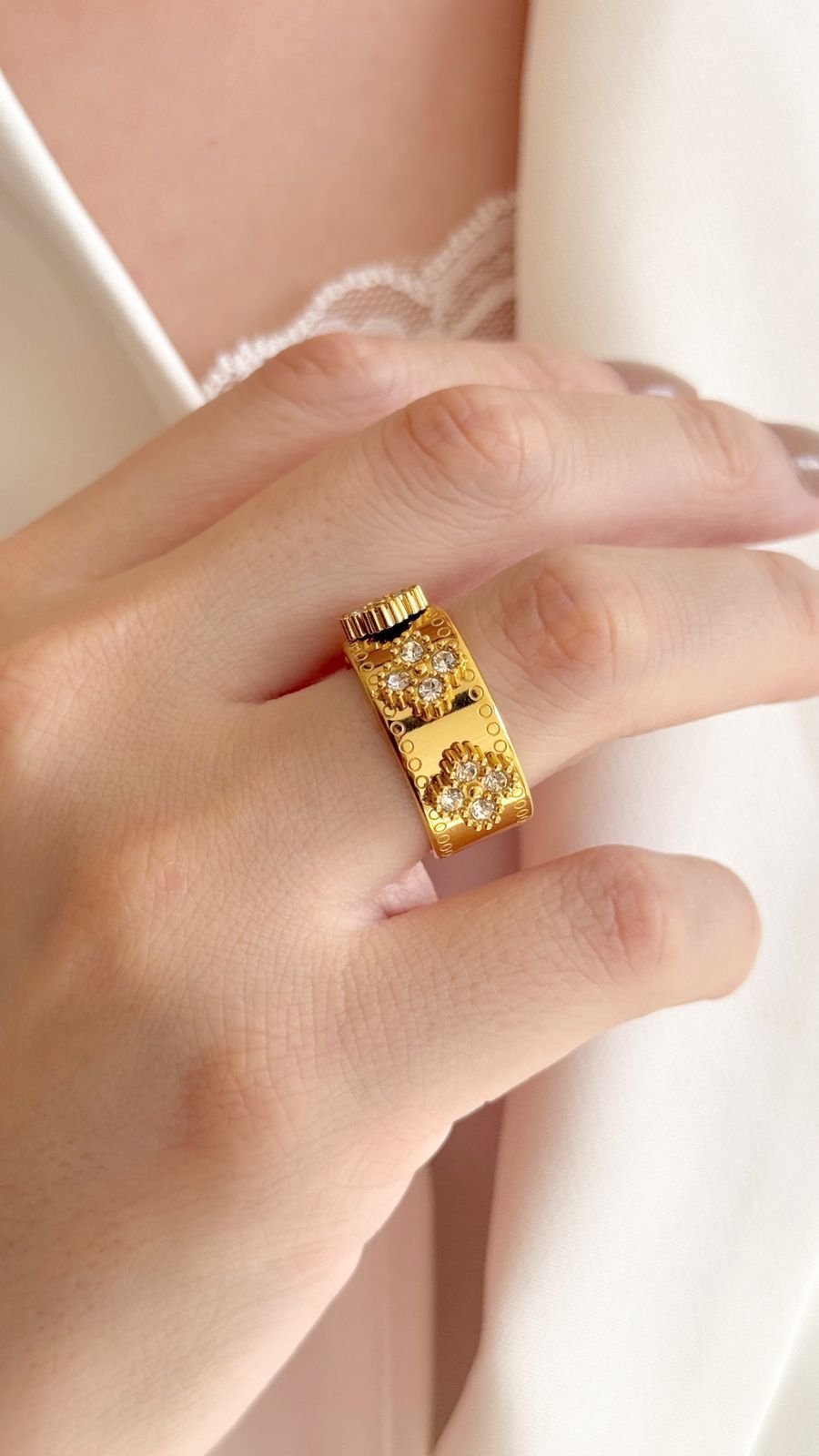 Anel Trevo Cravejado em Semi Joia Resistente á Agua Dourado