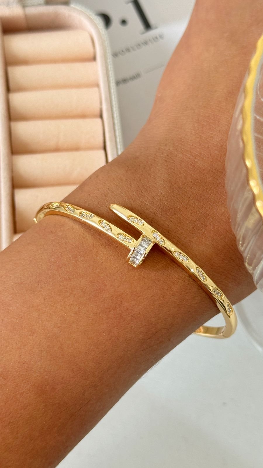 Bracelete Insp Prego com pedras Cravejadas , folheado á ouro18k e a prata em ródio branco.