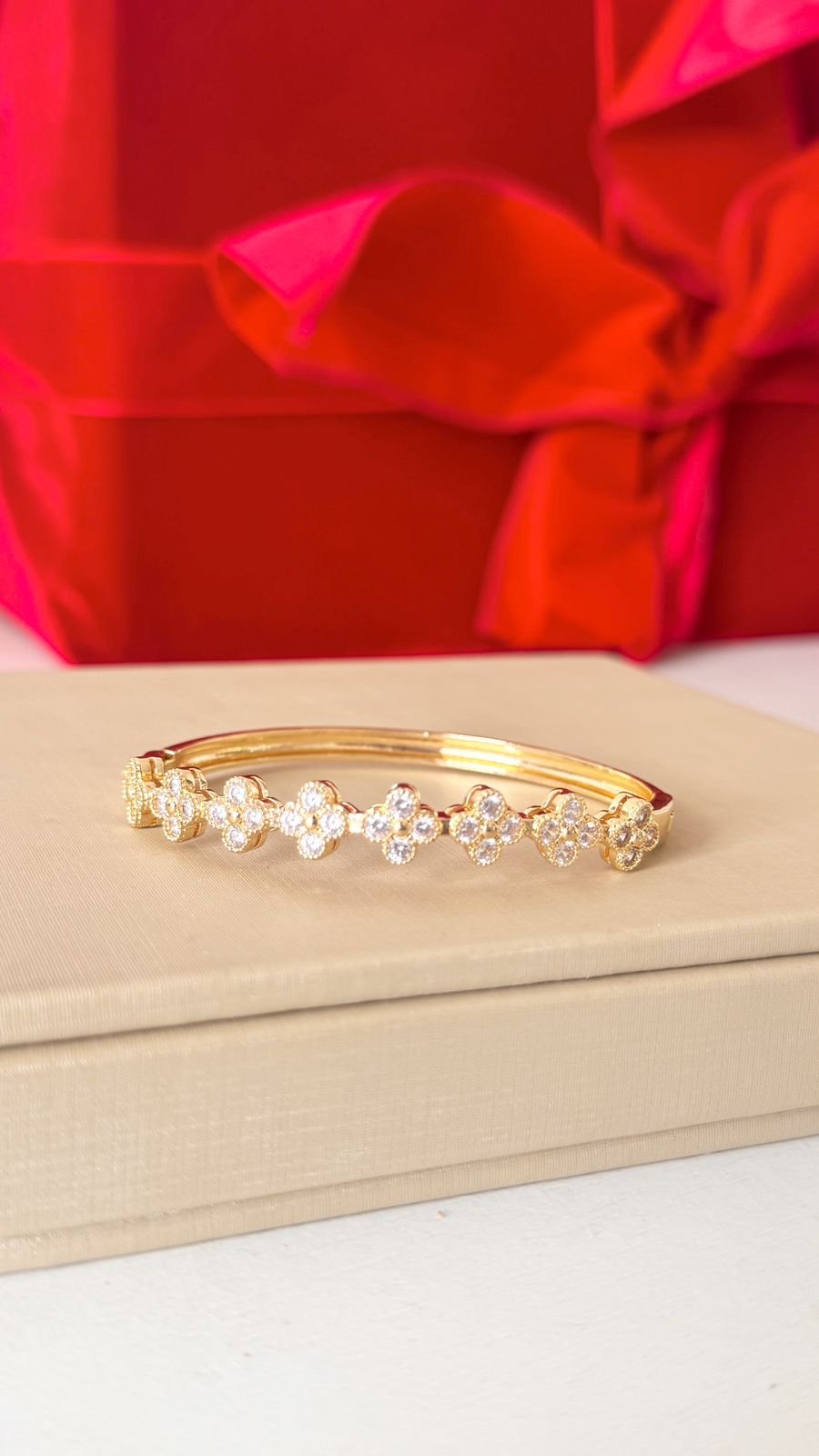 BRA187 Bracelete De Trevo Cravejado Folheado á OURO18K
