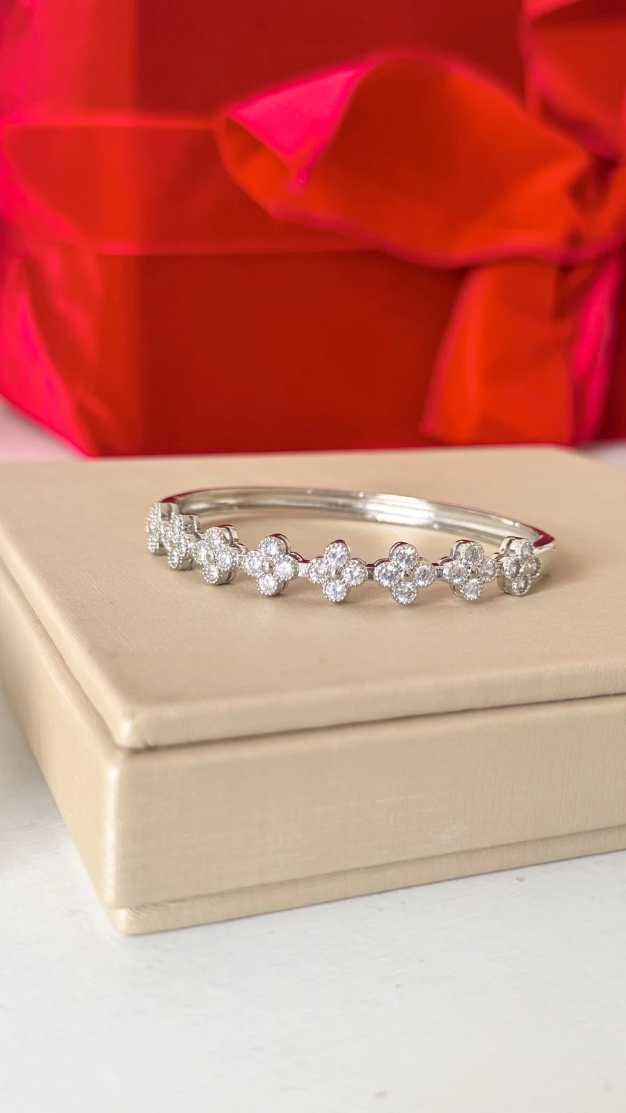 BRA188 Bracelete De Trevo Cravejado Folheado á PRATA Ródio Branco