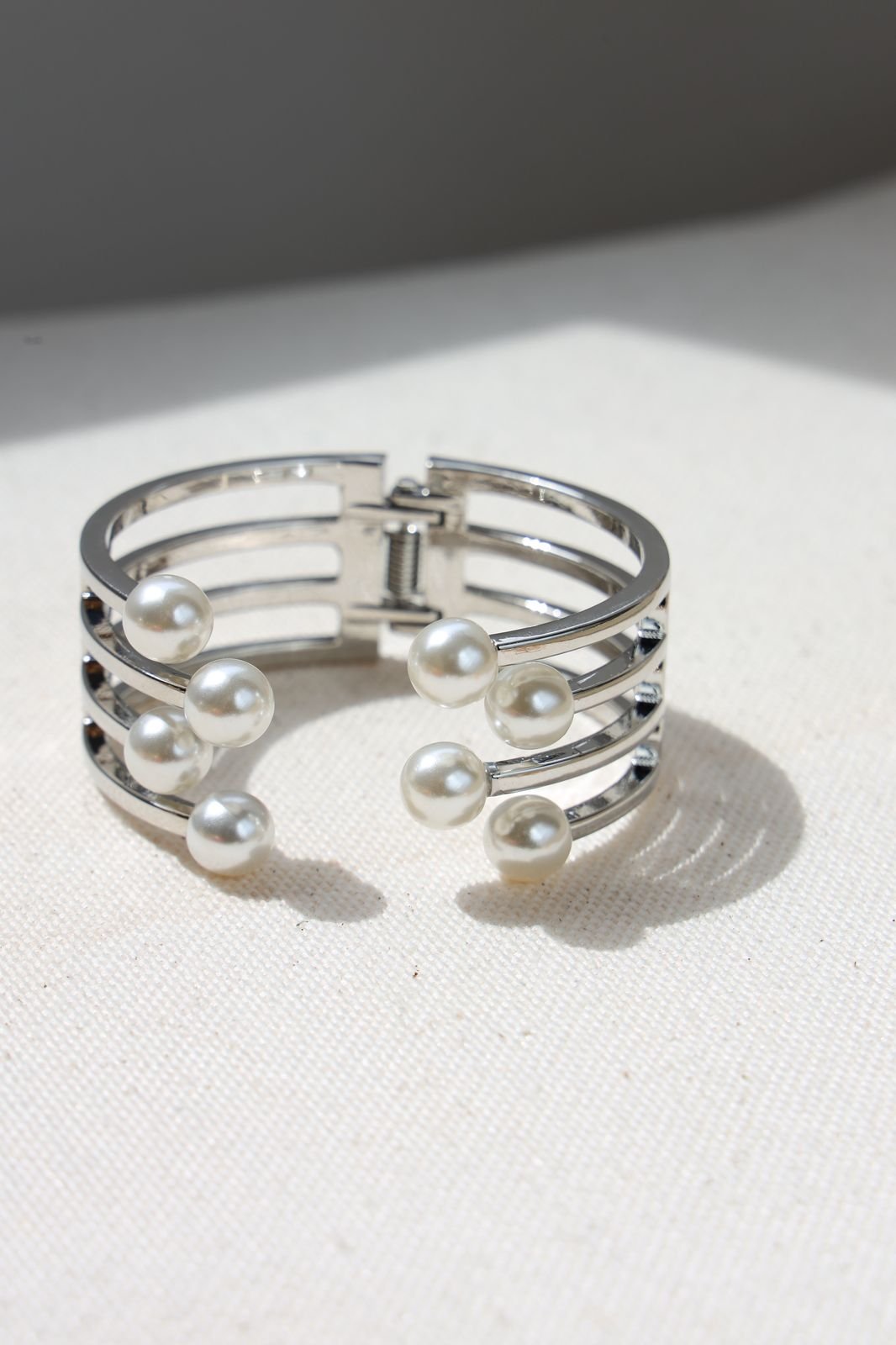 BRA251 Bracelete Pérola Ajustável Folheado á PRATA ródio branco