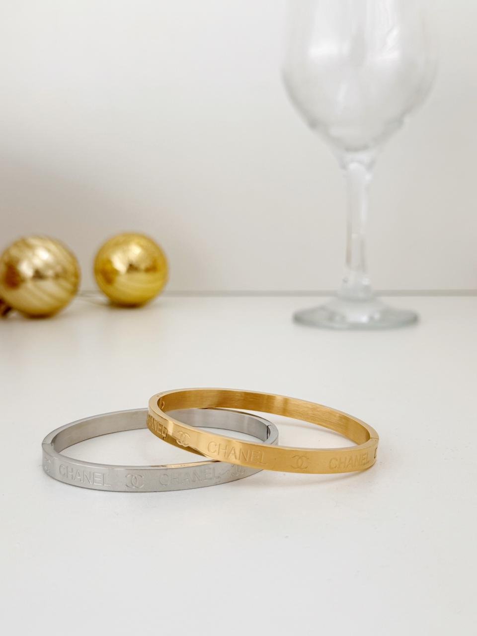 Bracelete CH folheado a ouro 18k e prata no ródio branco