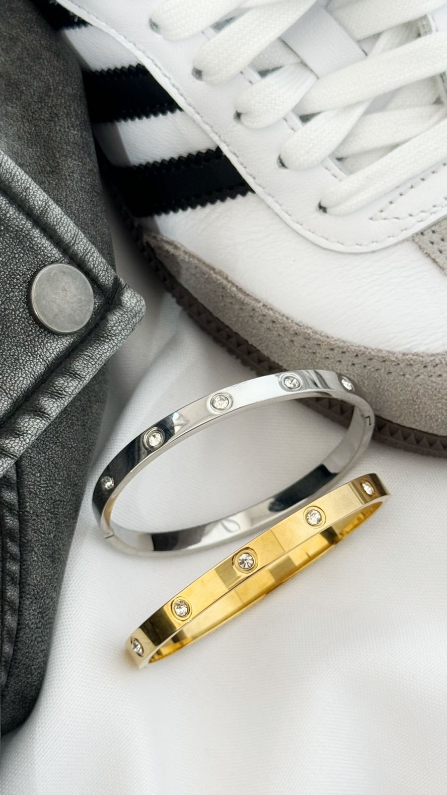 Bracelete ponto de luz, em aço inoxidável dourado e prata.