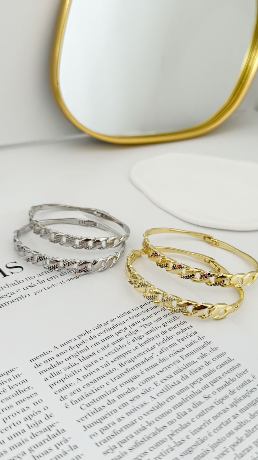 BRA83 Bracelete Elos com zircônias cravejadas Folheado