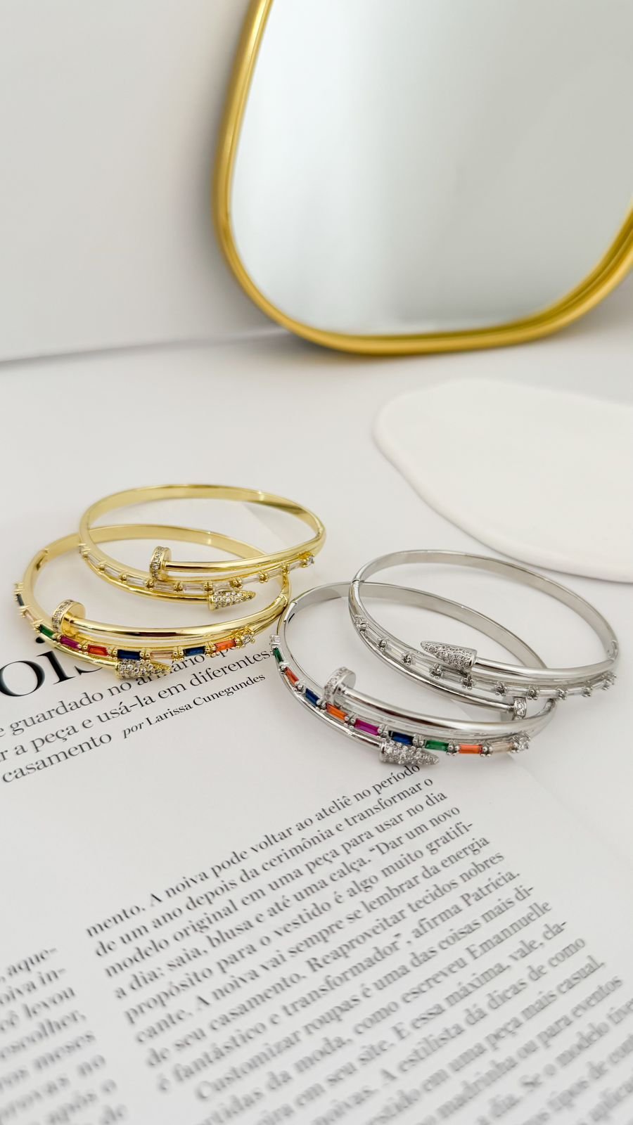 Bracelete prego gold cravejado com zircônias, folheado á ouro18k e a prata em ródio branco.