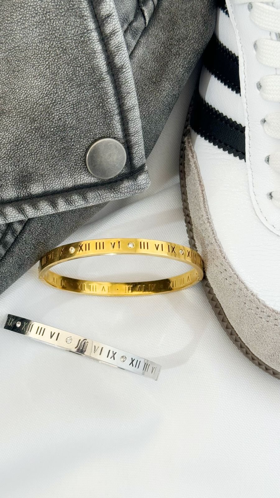 Clássico e sofisticado na medida certa! Este bracelete em aço inoxidável resistente à água está disponível nas versões dourada e prateada, perfeito para quem busca elegância e praticidade no dia a dia. Os detalhes em algarismos romanos trazem um charme atemporal, enquanto o ponto de luz central adiciona um toque delicado e refinado à peça. Ideal para usar sozinho ou compor mix de pulseiras com estilo e personalidade