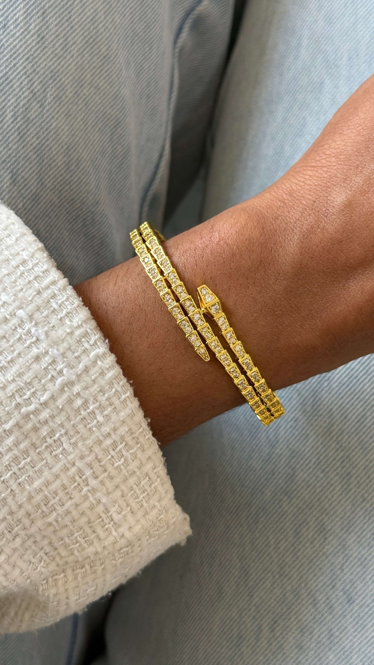 Bracelete Cobra 3 Voltas Cravejado Semi Joia Prata ou Dourada
