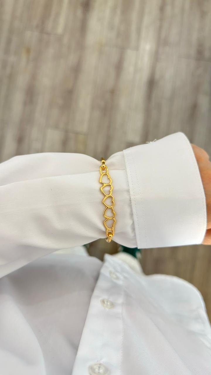 Delicado e cheio de significado, o Bracelete Corações Vazados Dourado é a escolha ideal para quem ama acessórios com toque romântico e moderno. Seu design composto por elos em formato de coração vazado transmite leveza e sofisticação, perfeito para usar no dia a dia ou presentear alguém especial.