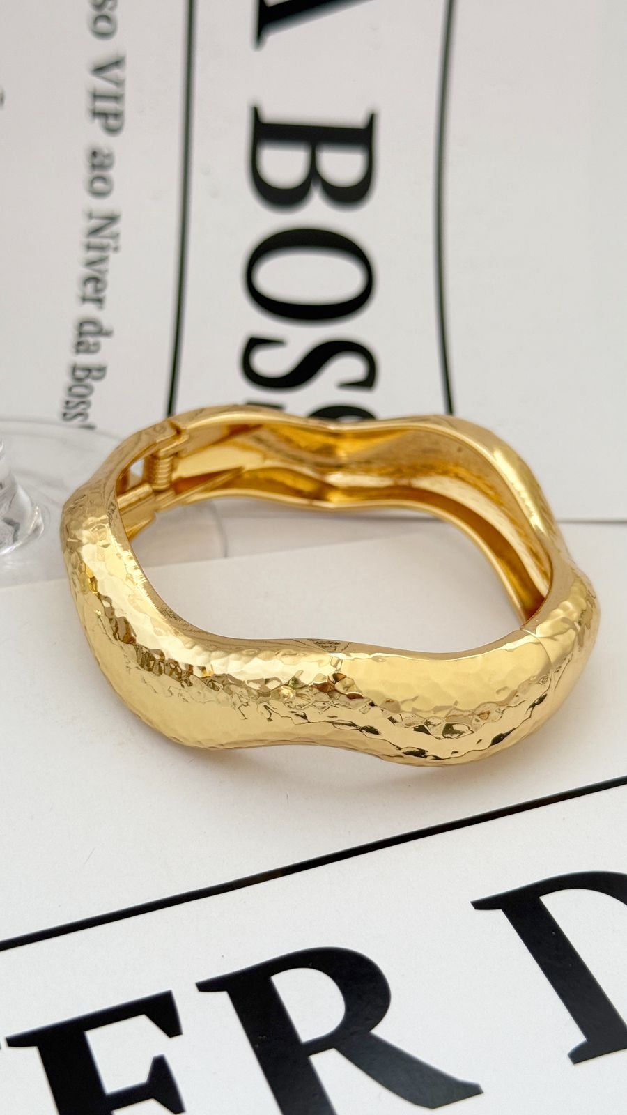 Bracelete Onda Martelado Folheado á OURO18k