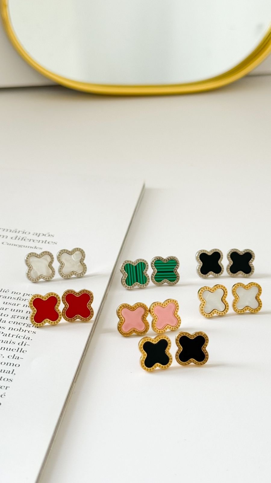 BRI168 Brinco Trevo Gold Semi Jóia : 168OV / : 10g Facebook X Pinterest WhatsApp : - + : OK × : 1x R$ 18,49 : R$ 18,49 : 2x R$ 9,25 : R$ 18,49 : 3x R$ 6,16 : R$ 18,49 × : Brinco Trevo gold em semi jóia, banhado á ouro18k e a prata em ródio branco. : Ouro e Vermelho