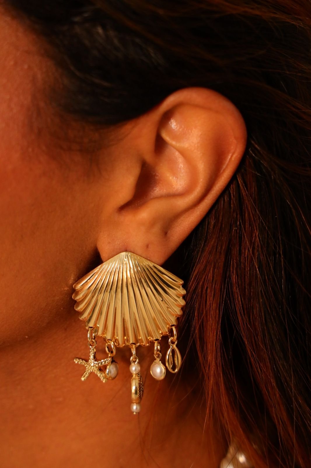 Brinco concha A''MAR'' folheado á ouro18k e a prata em ródio branco