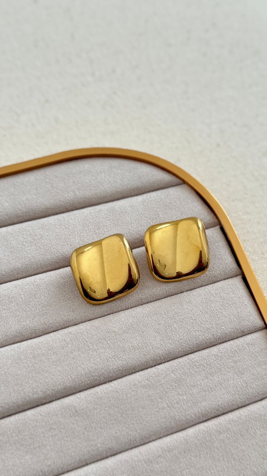 Brinco Quadrado martelado em aço inoxidável dourado e prata.