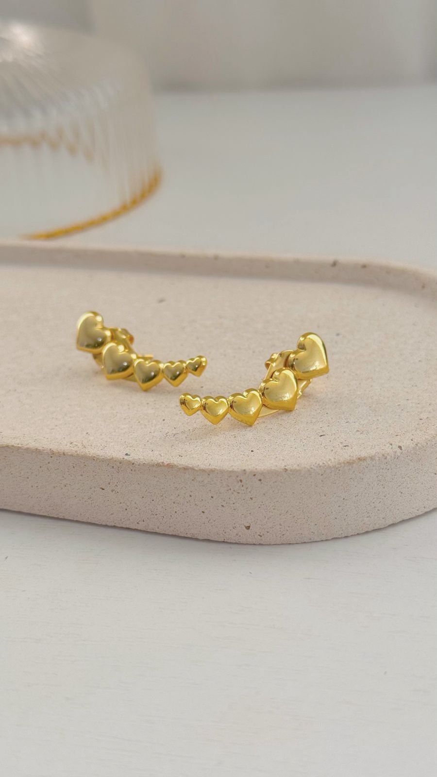 BRI696 Brinco Earcuff Coração Folheado Dourado