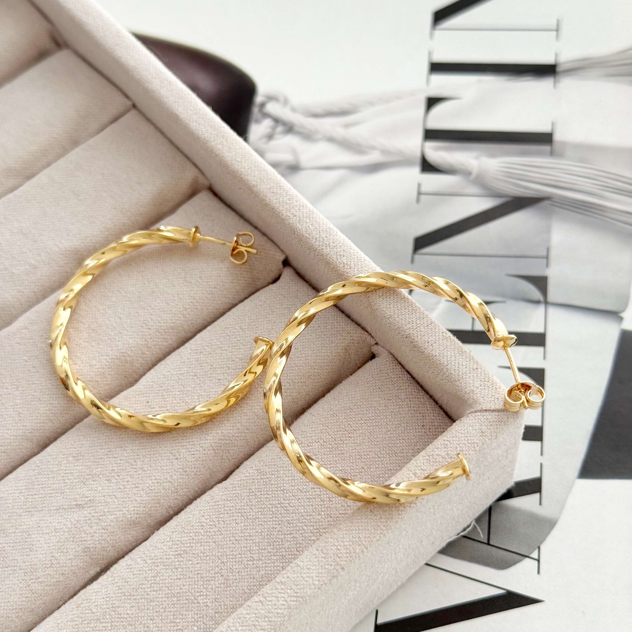 O Brinco Argola Torcida Lisa é uma semi joia moderna, elegante e perfeita para quem busca um design diferenciado sem abrir mão da sofisticação. Sua estrutura em torção lisa cria um efeito visual fluido e contemporâneo, trazendo brilho e movimento ao look de maneira sutil e muito estilosa.