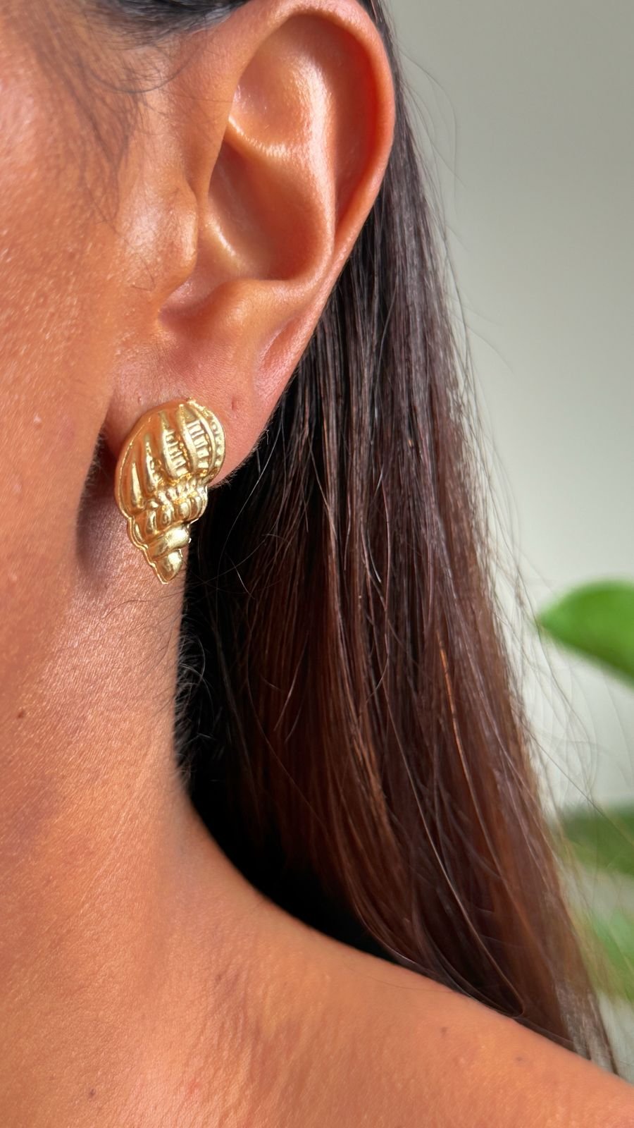Brinco Concha Trabalhada em Folheado á OURO18k