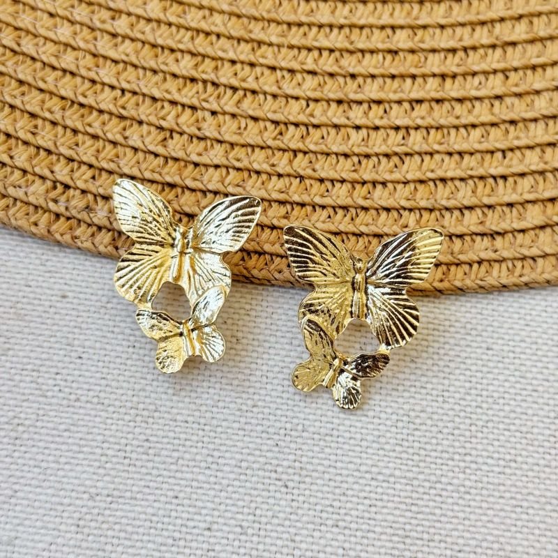 Brinco Duas Borboletas Folheado a Ouro 18K