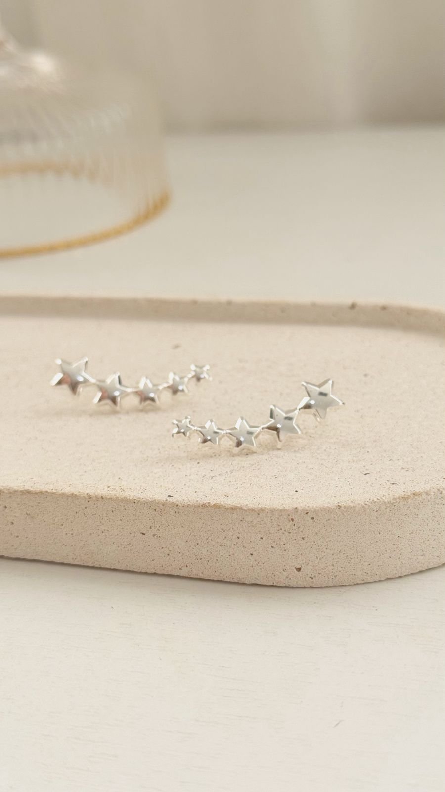 Brinco Earcuff Estrelas Folheado Prateado