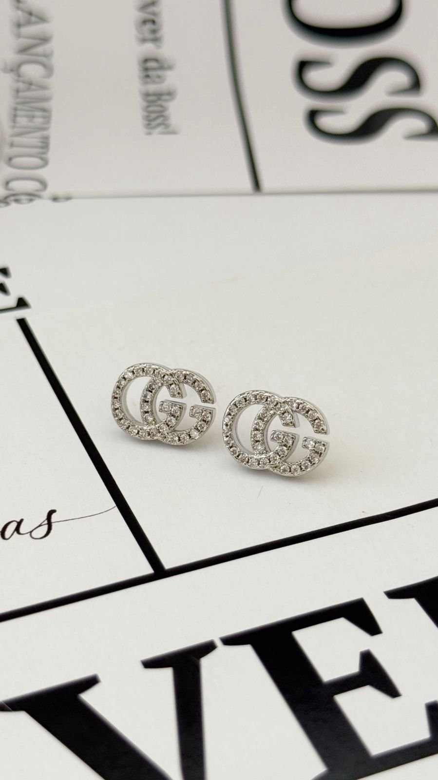 Brinco Insp G Cravejado em Semi Joia Banhado á PRATA