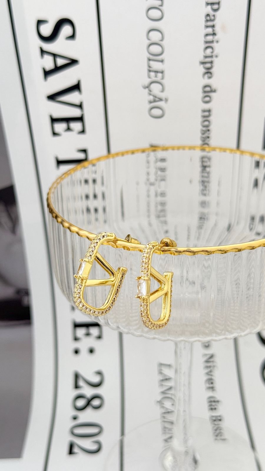 Brinco Insp V Cravejado em Semi Joia Banhado á OURO