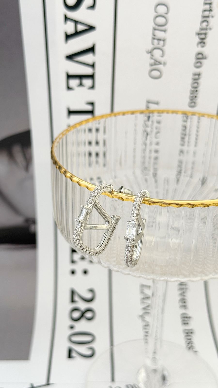 Brinco Insp V Cravejado em Semi Joia Banhado á PRATA