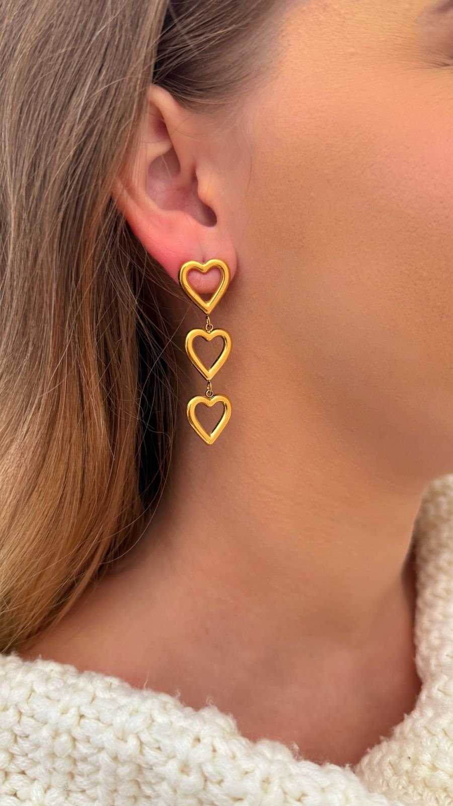Brinco Três Corações Pendurado Resistente á Água