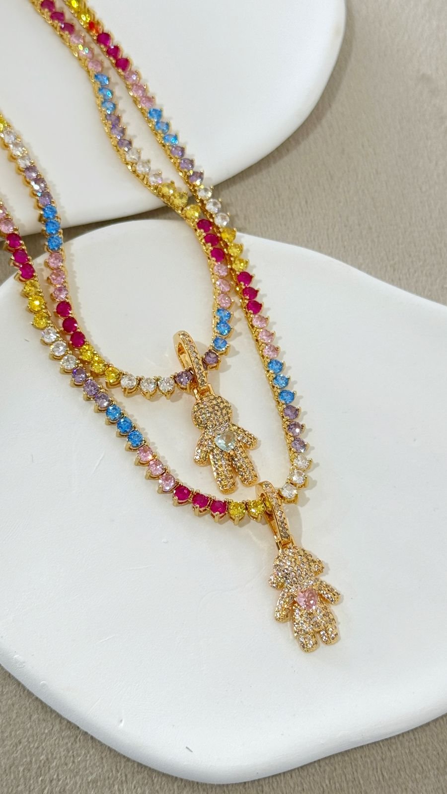 COLR103 Colar Riviera colorida com FILHO LOVE cravejado Semi jóia