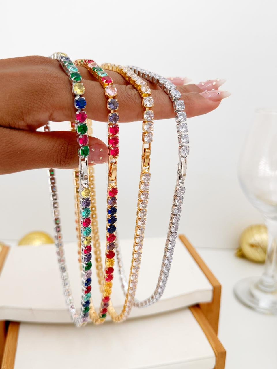 Colar riviera M com zirconia cravejada fecho gaveta folheada a ouro 18k e prata no ródio branco