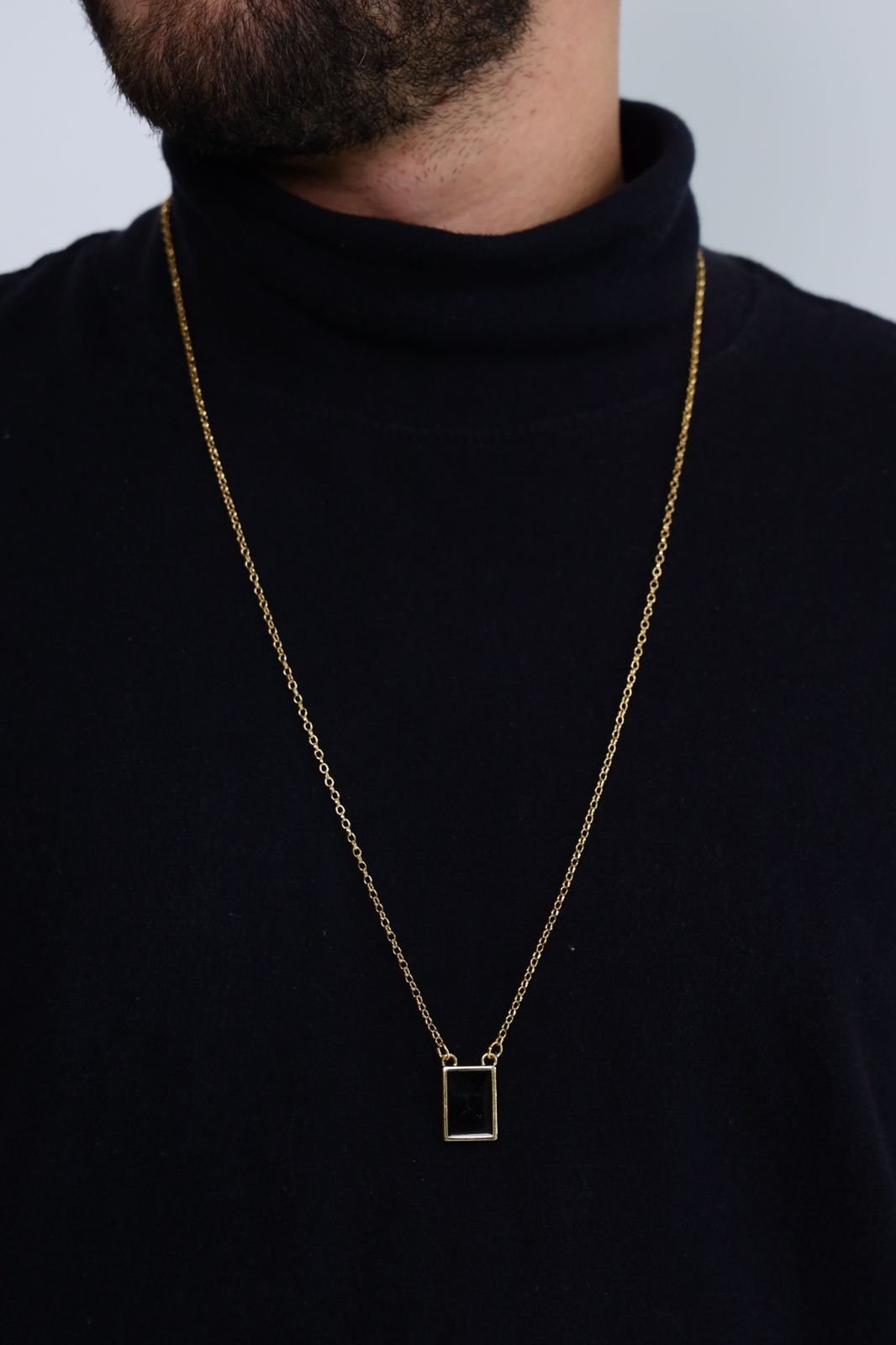Escapulário Masculino Livrai-Nos Do Mal Amém/ Lado Esmaltado Preto em semi jóia, banhado á ouro18k