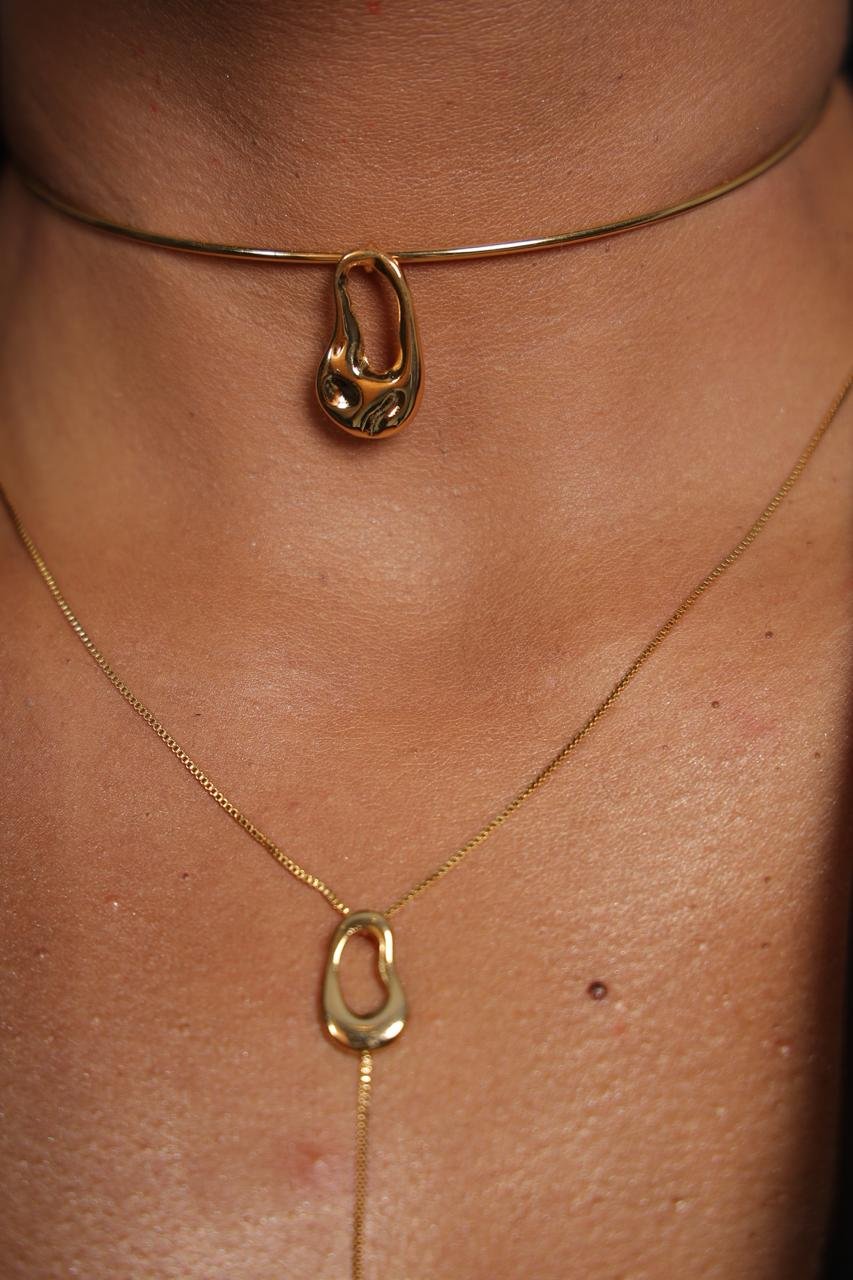 Colar choker organic minimalista modelo andressa semi jóia banhado á ouro 18k