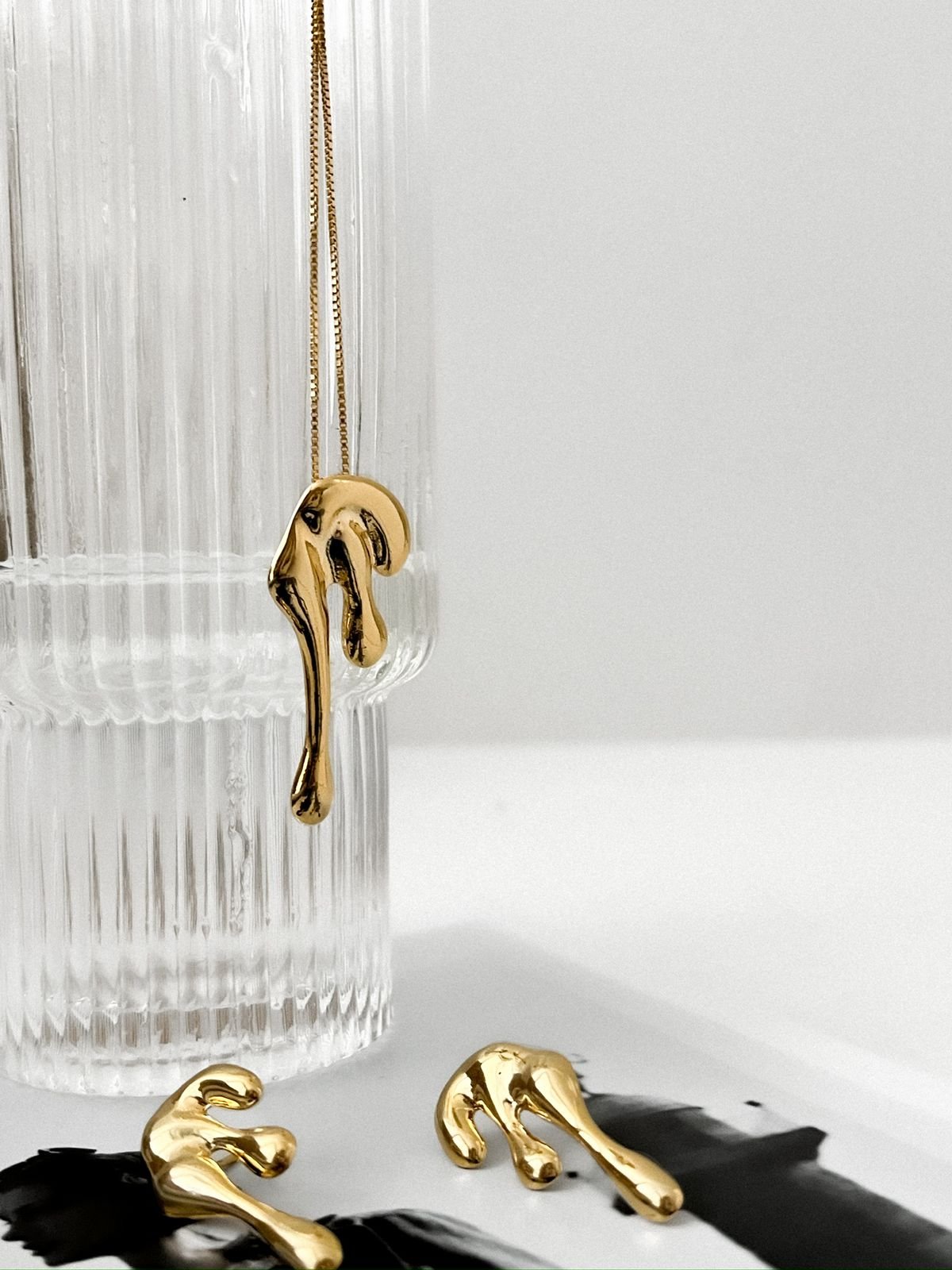 Colar organic gotas em semi jóia, banhado á ouro 18k