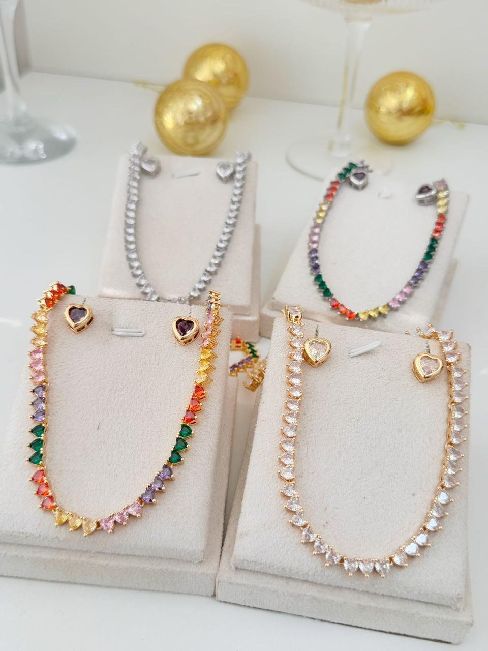 CONJ27 Conjunto riviera love fecho gaveta com zirconia cravejadas folheado