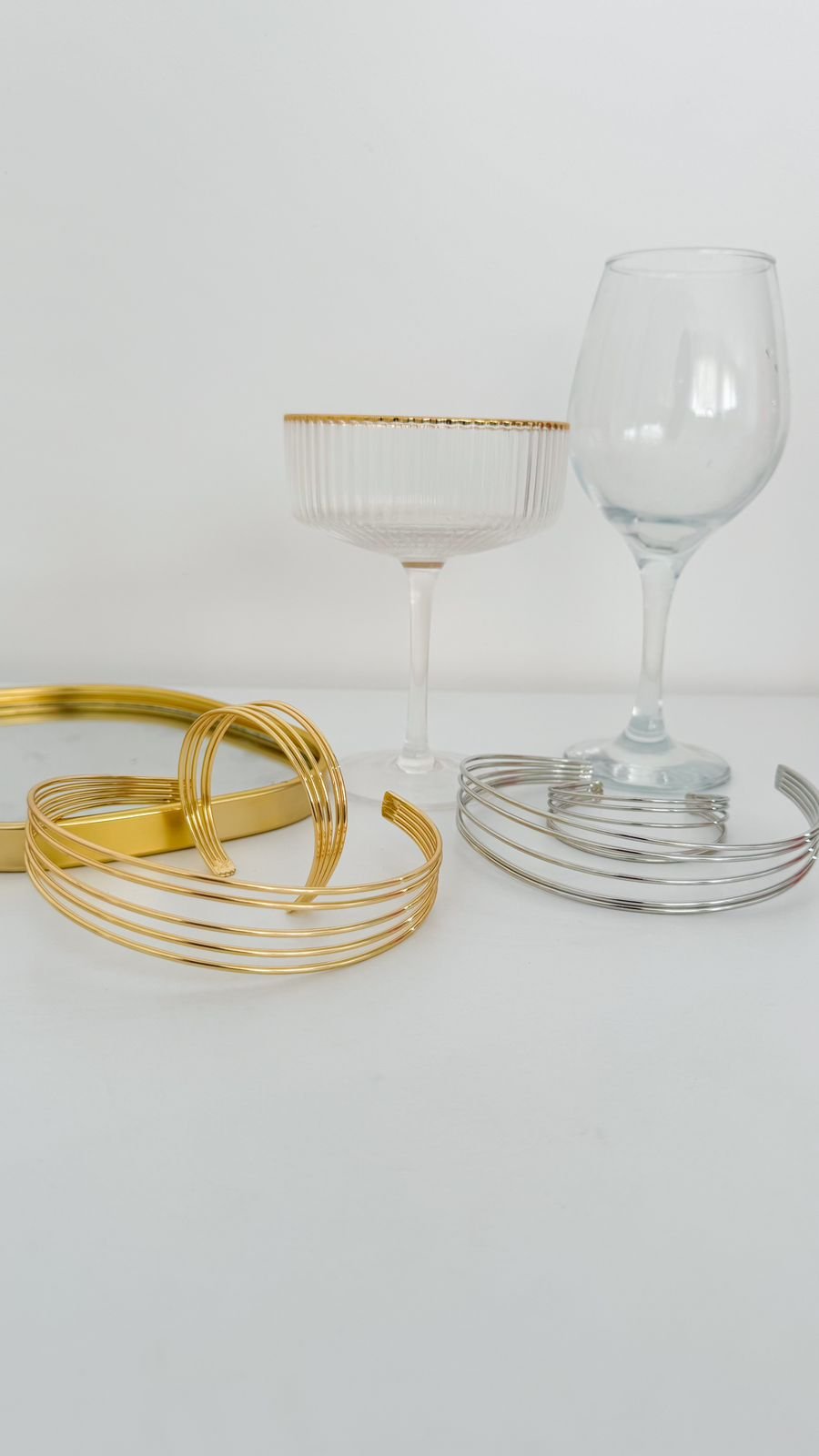 Conjunto Aro Choker/Bracelete 5 Fios, folheado á ouro18k e a prata em ródio branco.