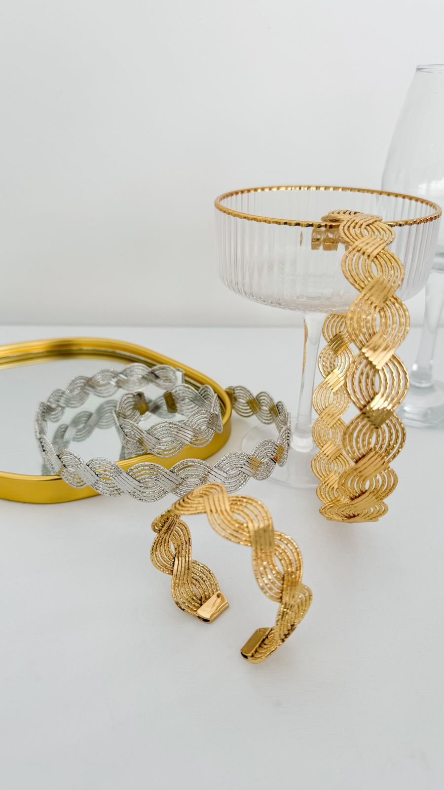 Conjunto Aro Choker/ Bracelete Trançado , folheado á ouro18k e a prata em ródio branco.